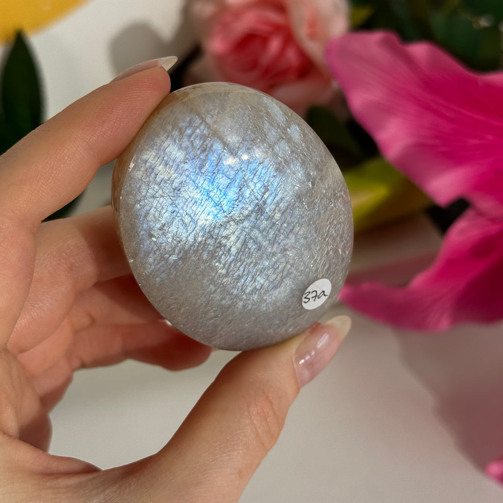 Der weiße Mondstein mit blauem Flash steht in der Spiritualität für Intuition, innere Klarheit und emotionale Balance. Sein schimmerndes Licht wird oft als Symbol für die Verbindung zur eigenen Weiblichkeit und zu den Zyklen des Lebens gesehen. Viele Menschen schätzen ihn in Momenten der Neuorientierung oder in Phasen, in denen sie lernen möchten, wieder mehr auf ihre innere Stimme zu hören. Der blaue Schimmer erinnert dabei daran, dass Eingebungen und Antworten oft leise erscheinen – wie kleine Lichtblitze im Dunkeln.