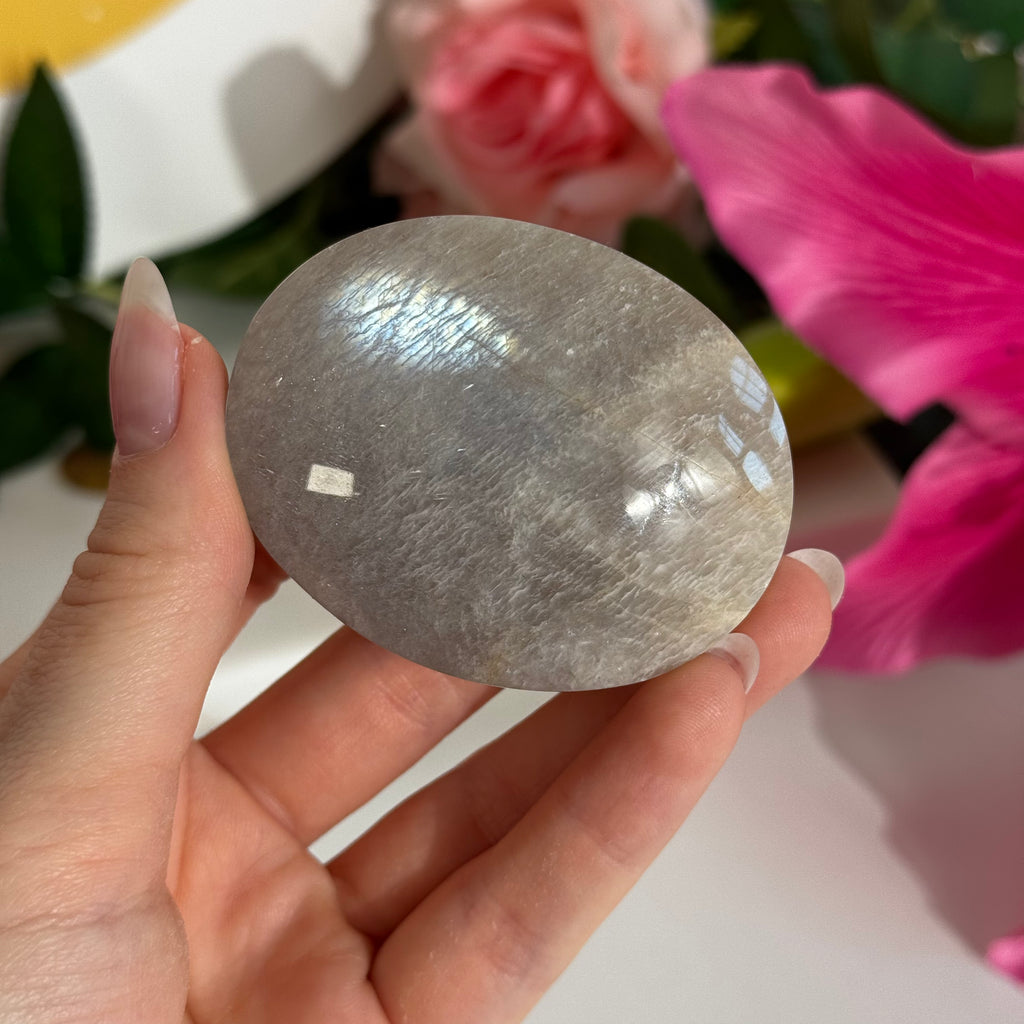 Weißer Mondstein gehört zur Feldspatgruppe und verdankt seinen charakteristischen Schimmer einem Phänomen namens Adulareszenz. Dabei wird das Licht im Inneren des Steins an feinen, parallel gelagerten Schichten gestreut – so entsteht der geheimnisvolle blaue Flash. Besonders beliebt sind hochwertige Stücke aus Sri Lanka und Indien, wo Mondstein seit Jahrhunderten nicht nur als Schmuckstein, sondern auch als „heiliger Stein“ verehrt wird. In vielen Kulturen galt er als Talisman, der Reisende schützt und Klarheit in Herzensangelegenheiten bringt.