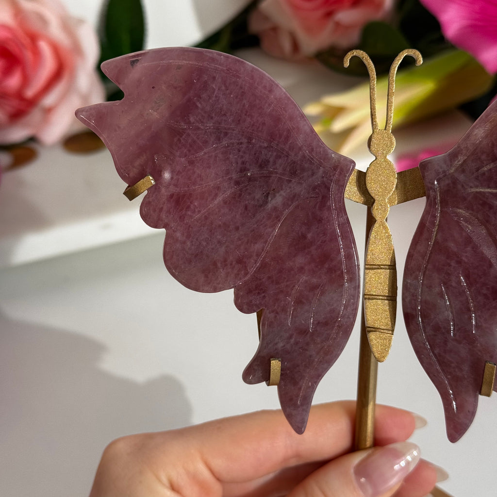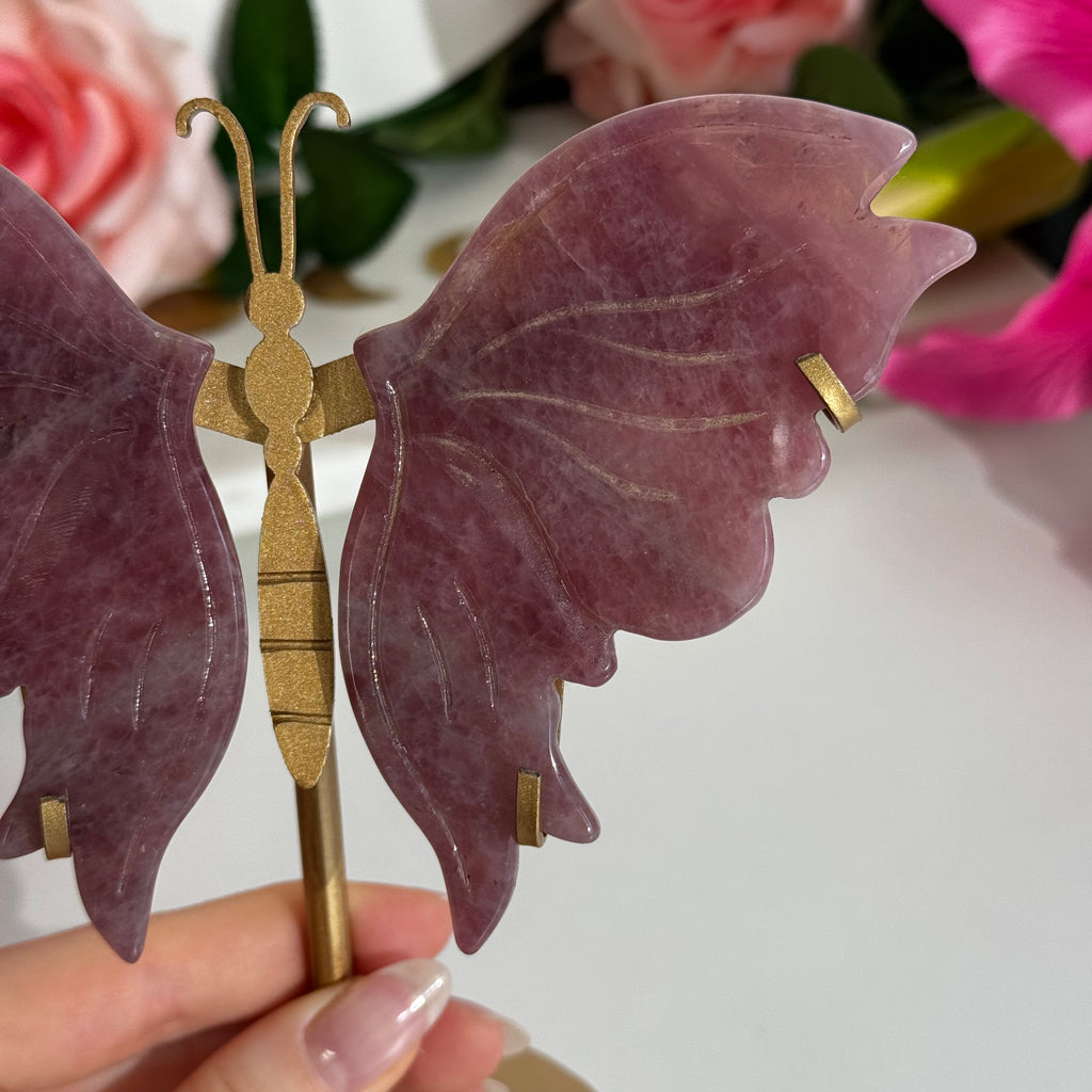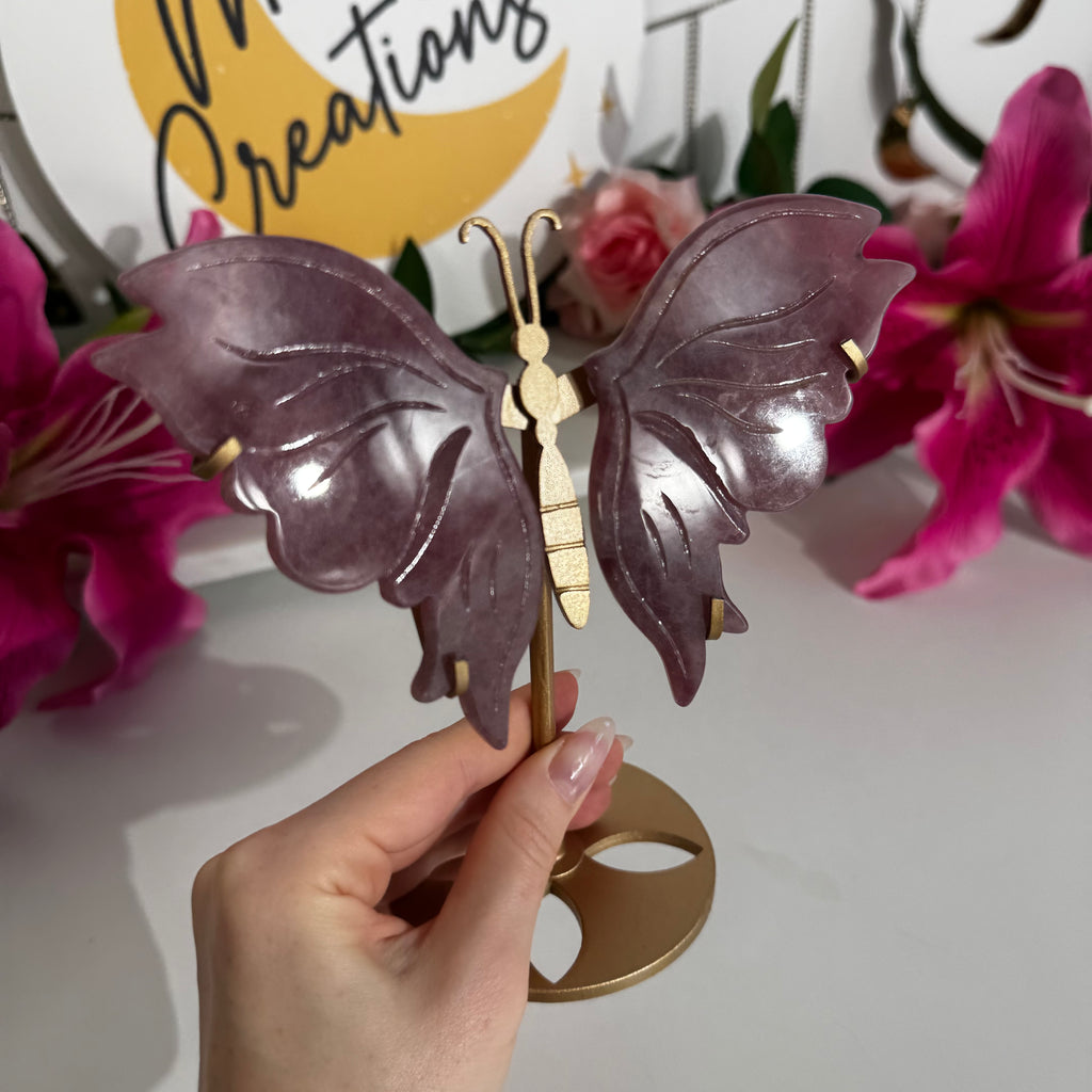Lavendel Rosenquarz Schmetterling inkl. Halterung #27