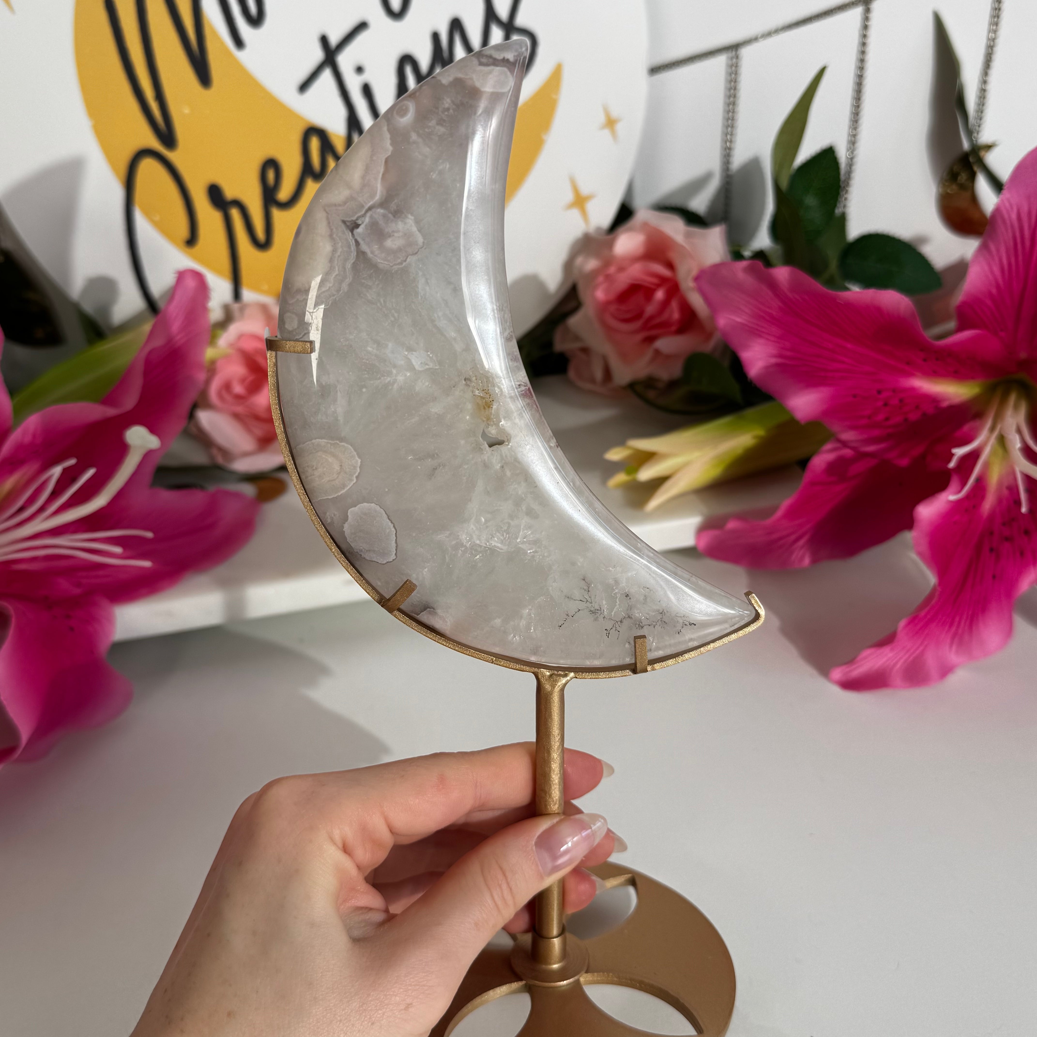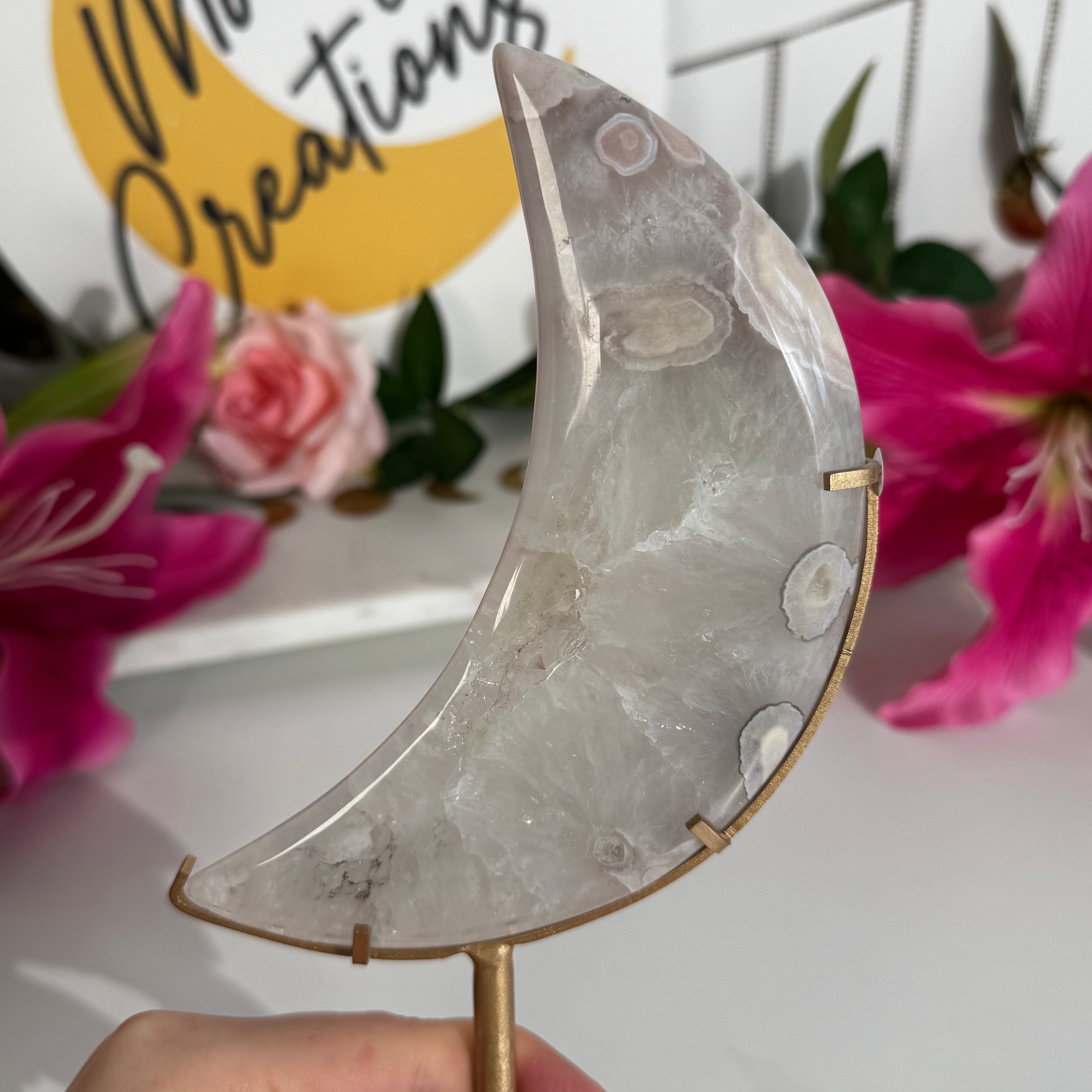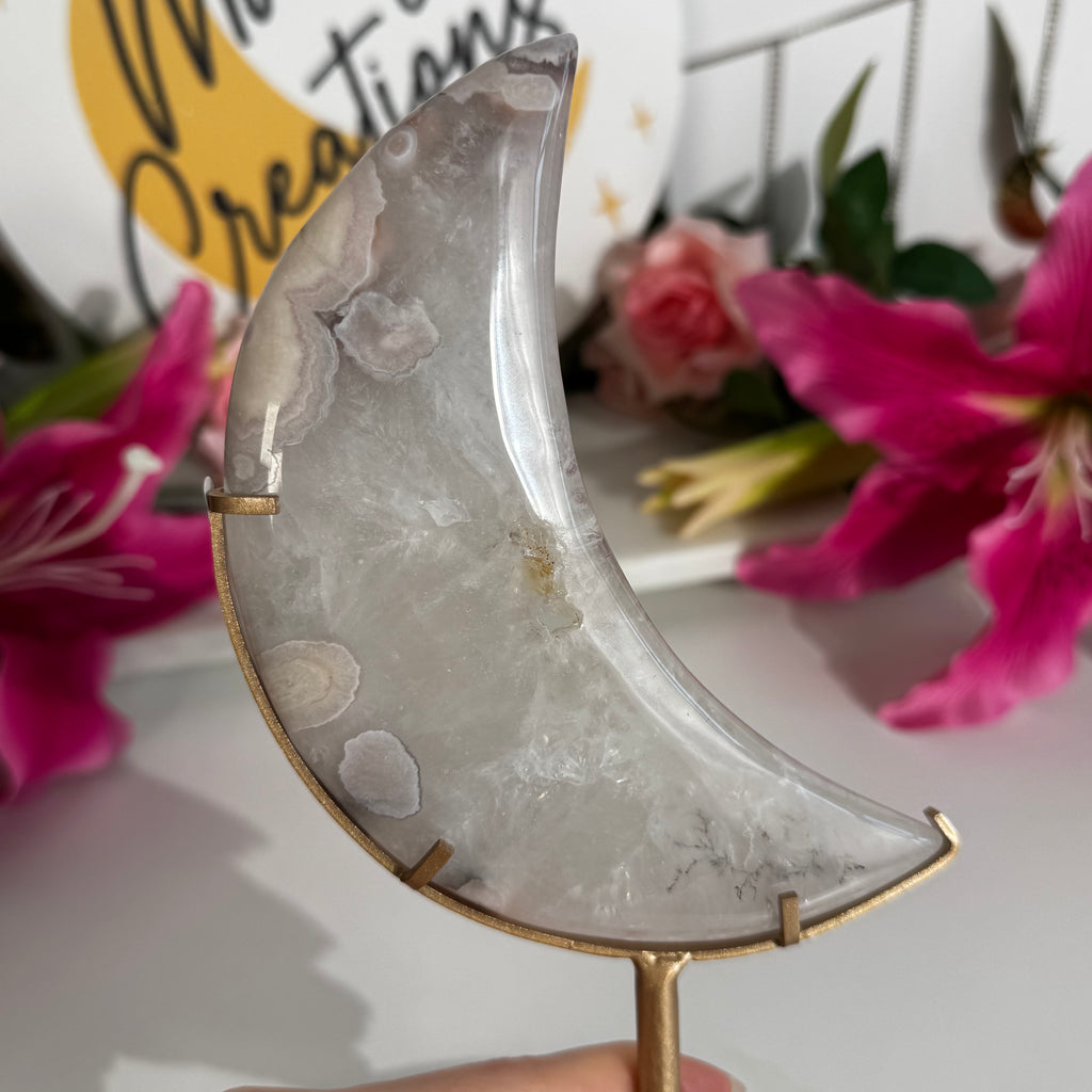 Prasiolith x Blumenachat Mond mit Halterung #85a
