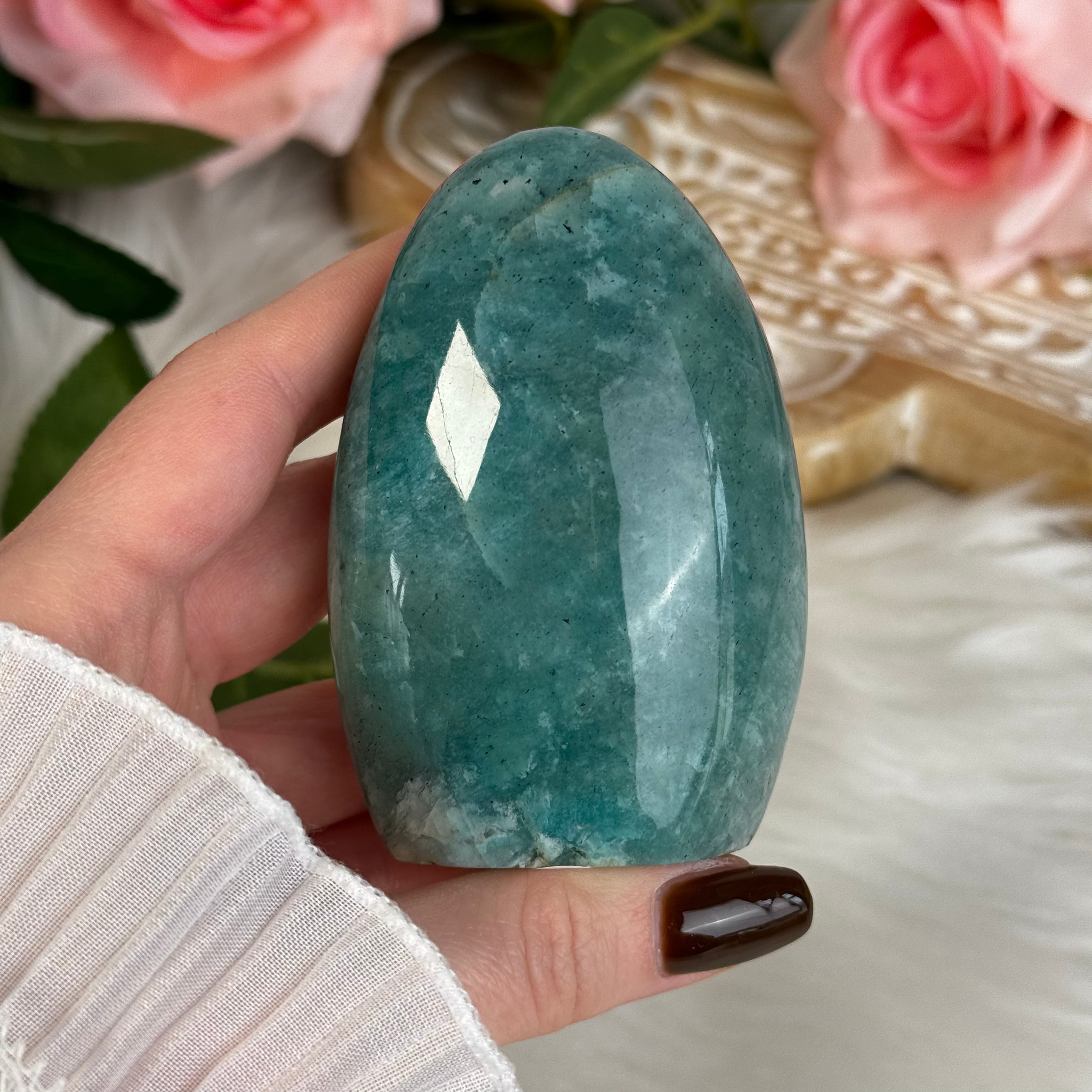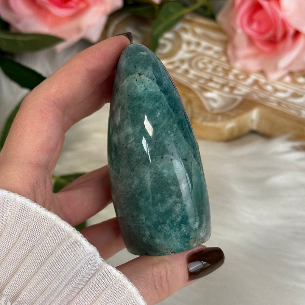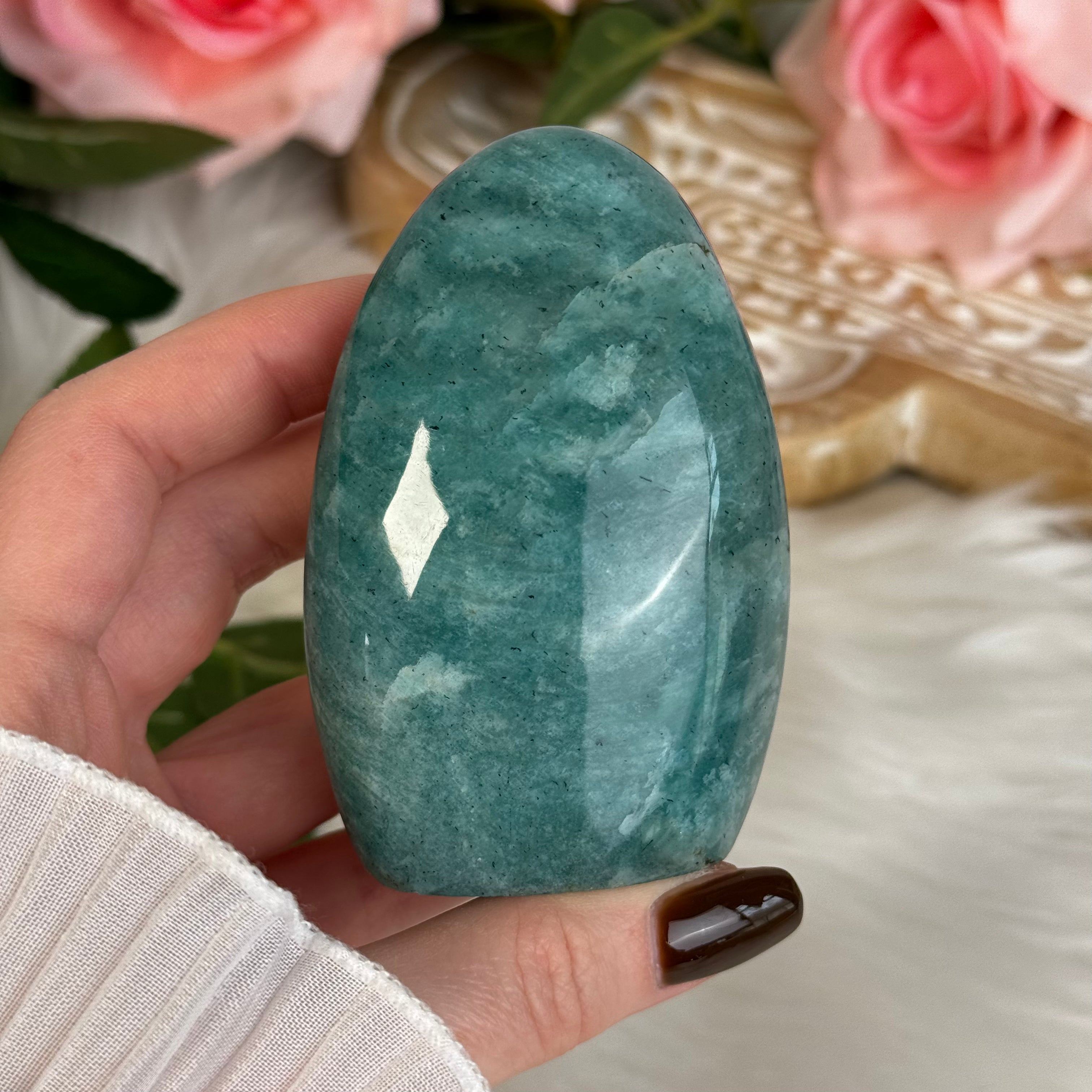 Amazonit, der oft als Stein der Hoffnung bezeichnet wird, sticht durch sein markantes Türkis hervor. Er wird mit beruhigenden Energien in Verbindung gebracht und kann dabei helfen, den Geist zu klären und negative Gedanken loszulassen. Seine erfrischende Ausstrahlung erinnert an klare Wasserflüsse im Amazonasgebiet.