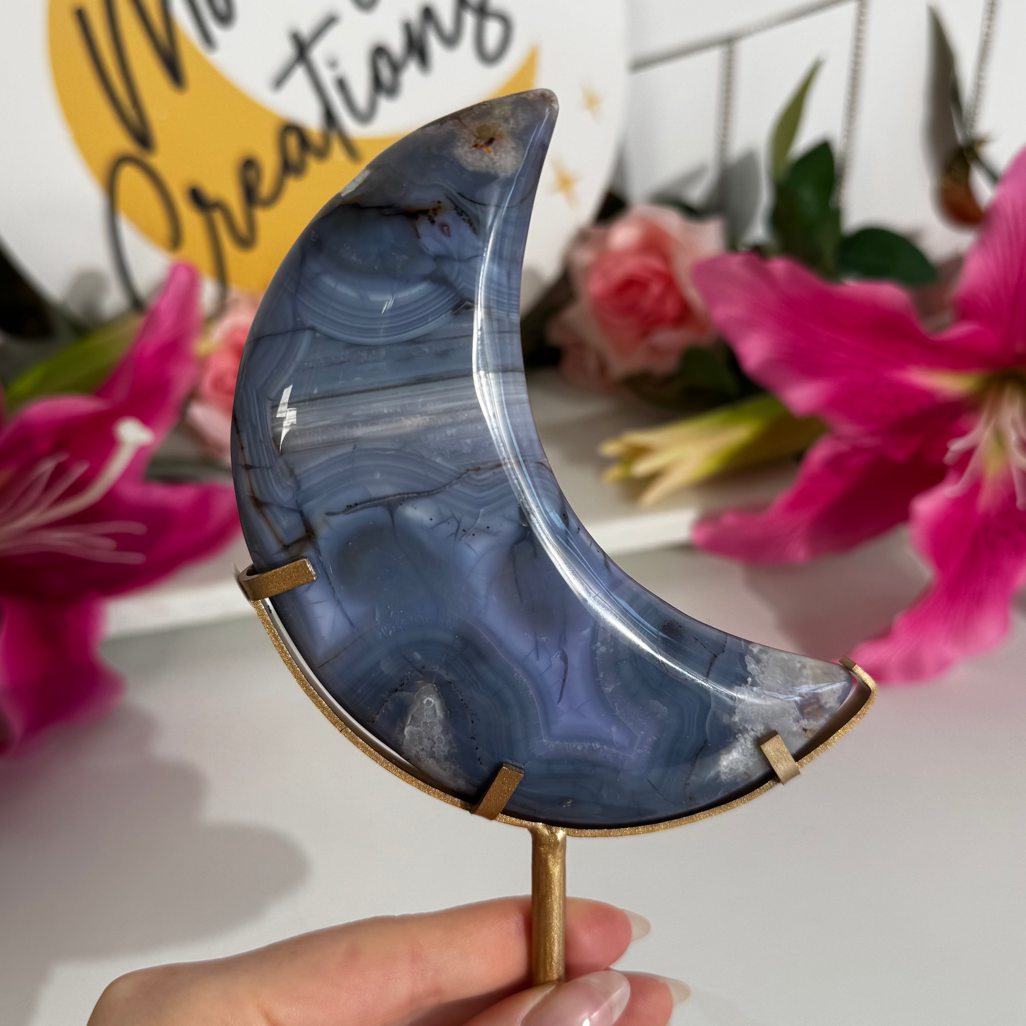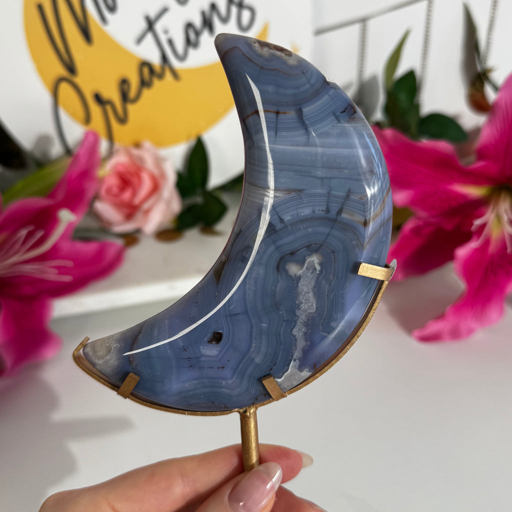 Blauer Achat Mond mit Halterung #63d