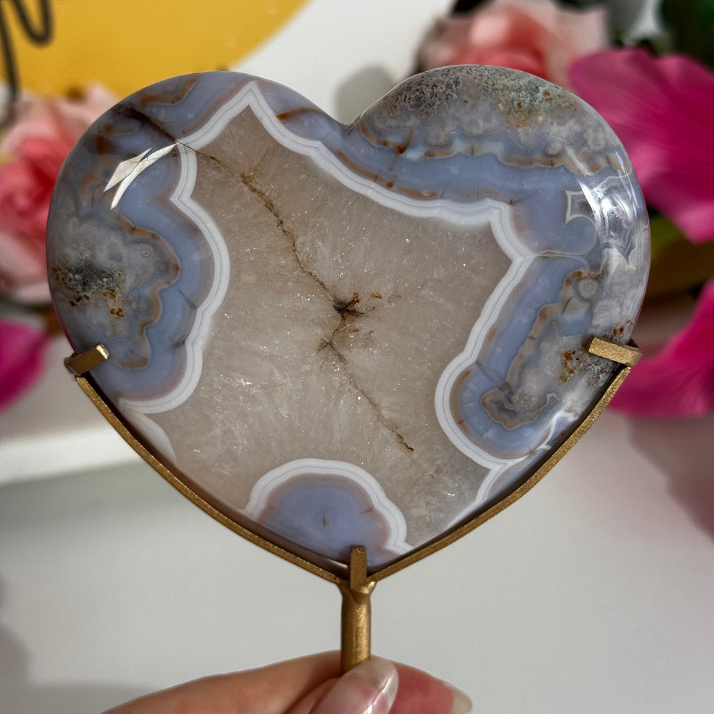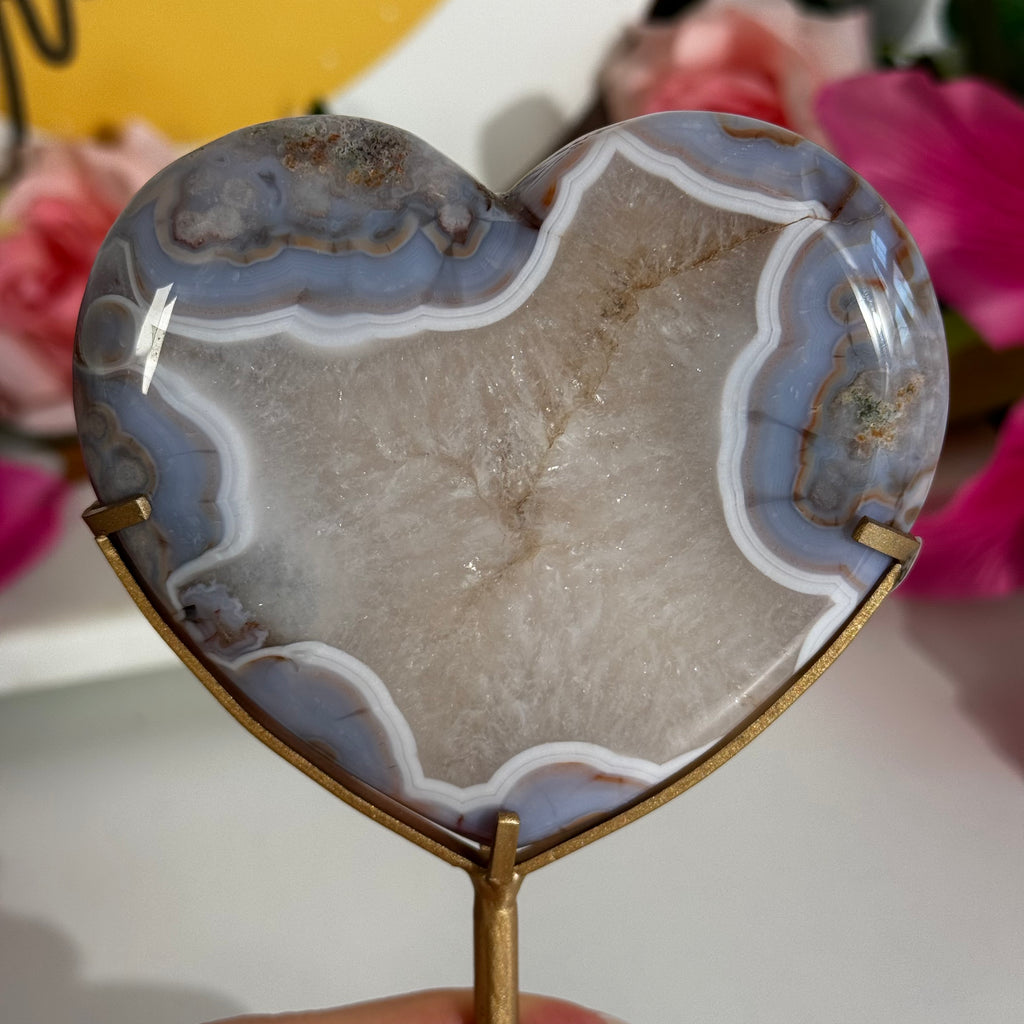 Der blaue Achat steht in der Spiritualität für innere Ruhe, Gelassenheit und einen klaren Selbstausdruck. Er wird häufig als Symbol für Ausgleich und harmonische Kommunikation gesehen. Viele Menschen schätzen ihn in Momenten, in denen sie sich mehr Leichtigkeit, emotionale Balance und Frieden wünschen – sowohl im Umgang mit sich selbst als auch mit anderen.