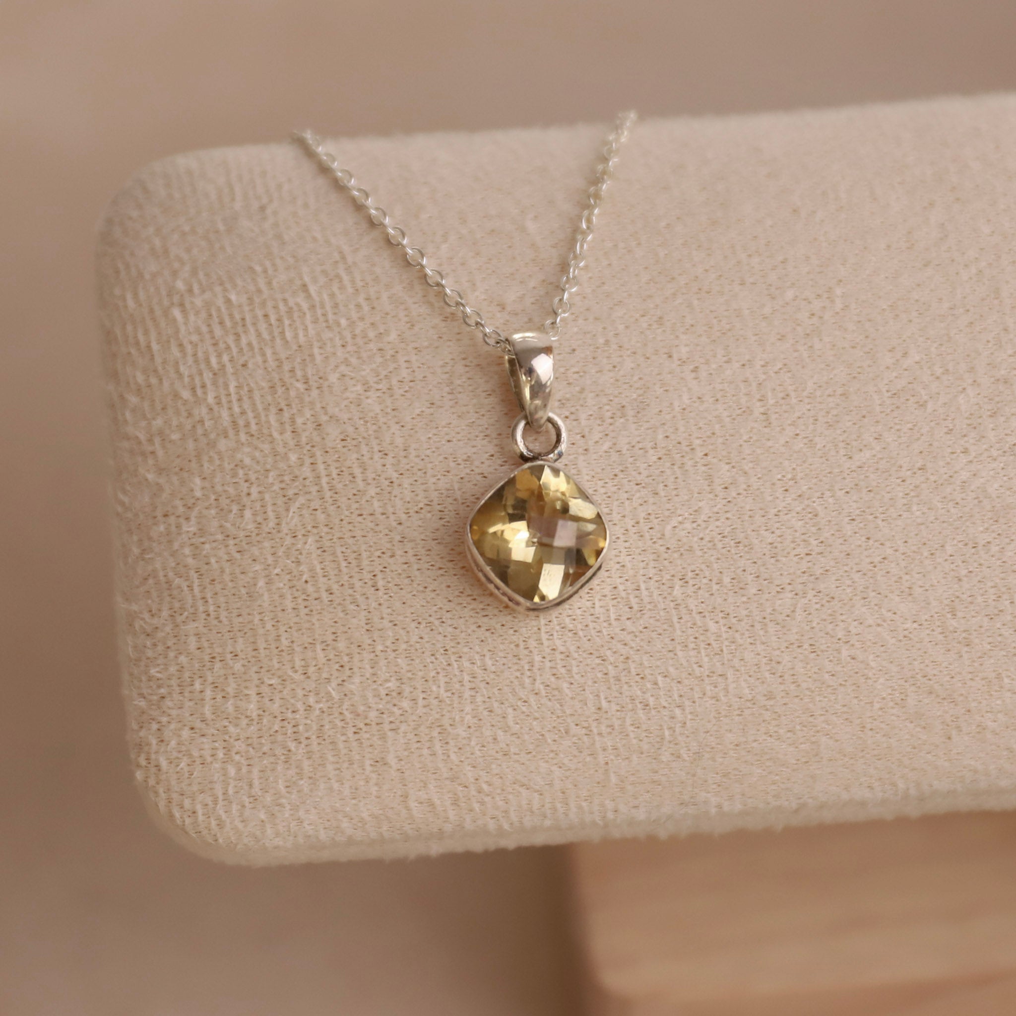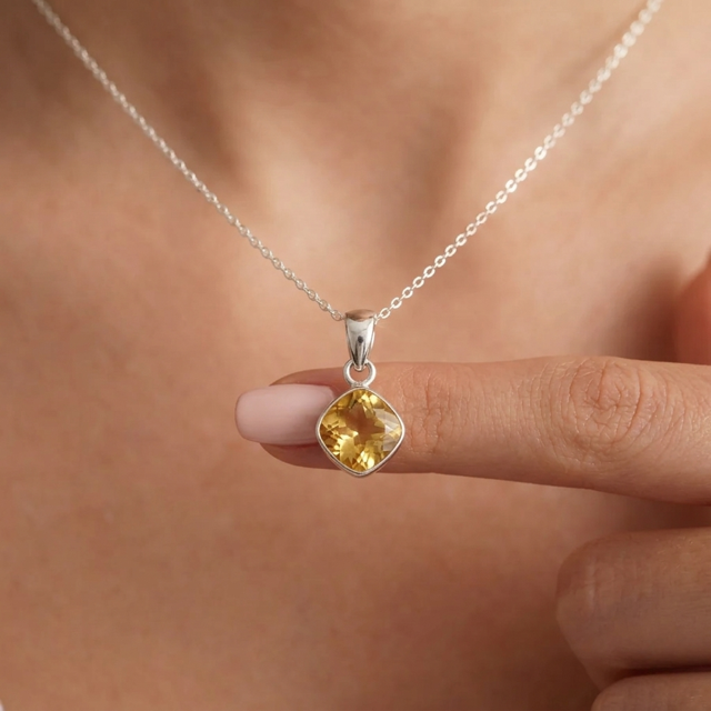 Eleganter Citrin Kettenanhänger aus gebranntem Citrin, gefasst in S925. Der warme, goldgelbe Glanz des Citrins symbolisiert Freude und positive Energie. Die Kette aus Edelstahl sorgt für einen langlebigen Tragekomfort ohne Anlaufen. Ein vielseitiges Schmuckstück, das zu verschiedenen Anlässen passt und perfekt als persönliches Accessoire oder Geschenk geeignet ist.