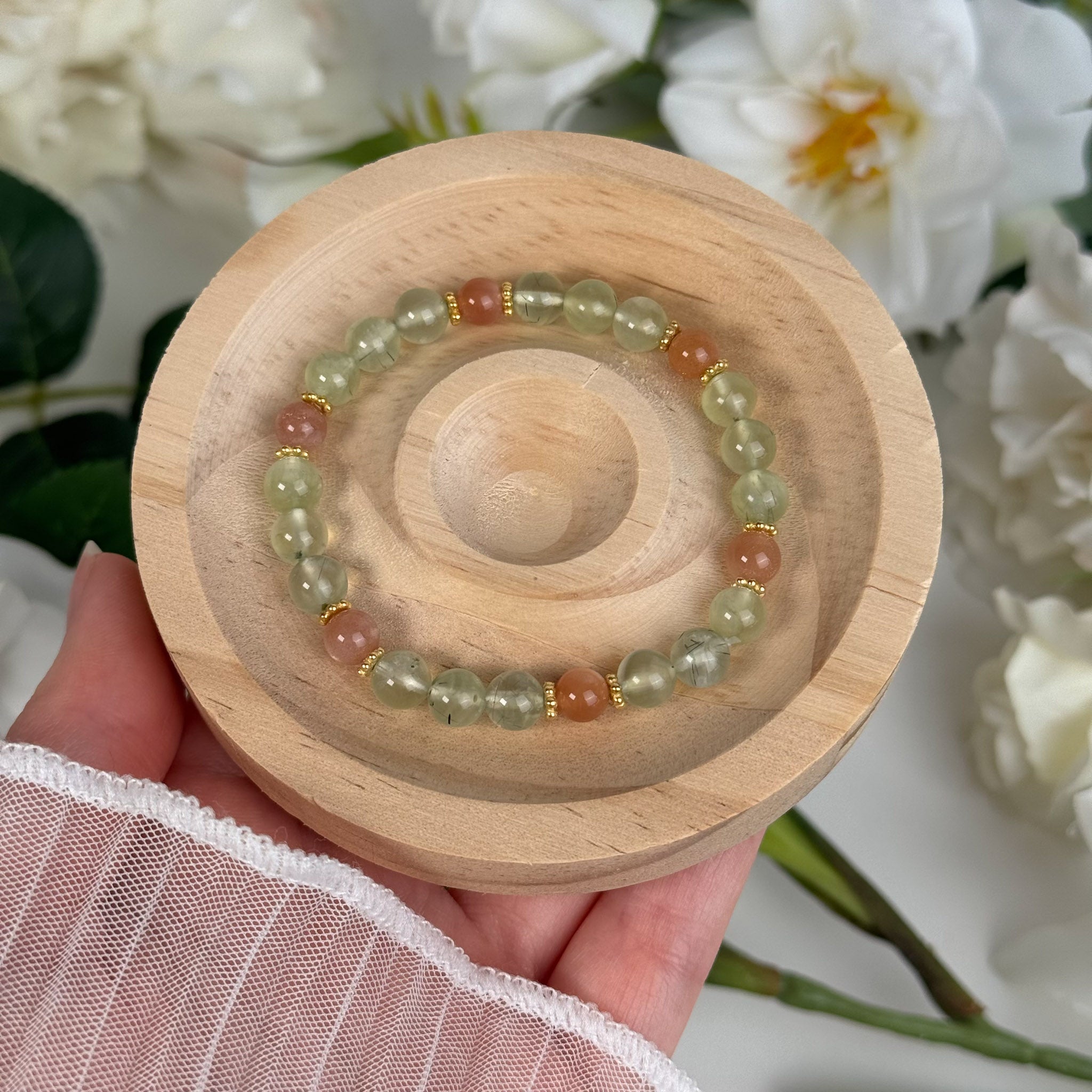 Edelsteinarmband mit Prehnit & Mondstein