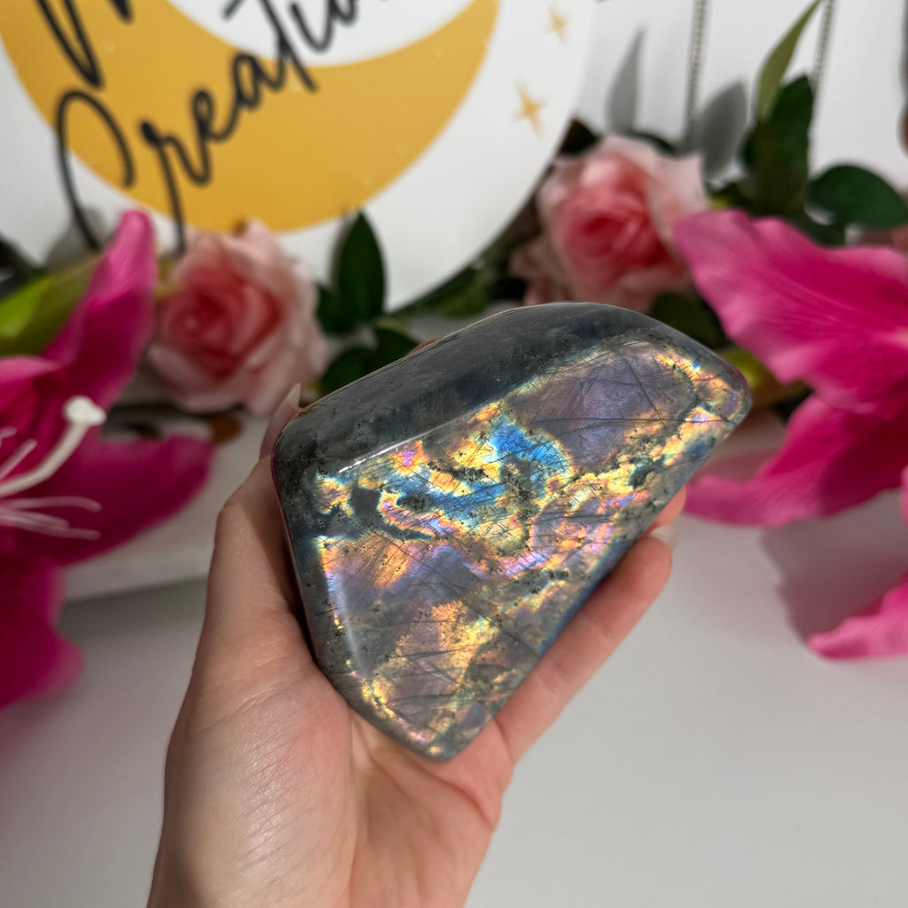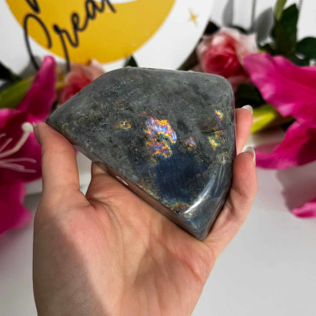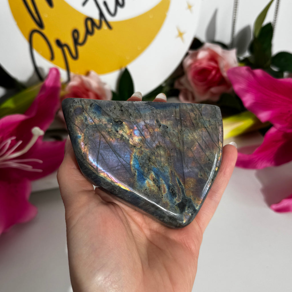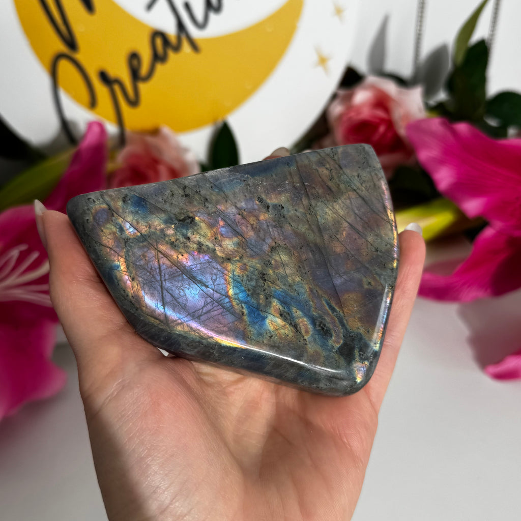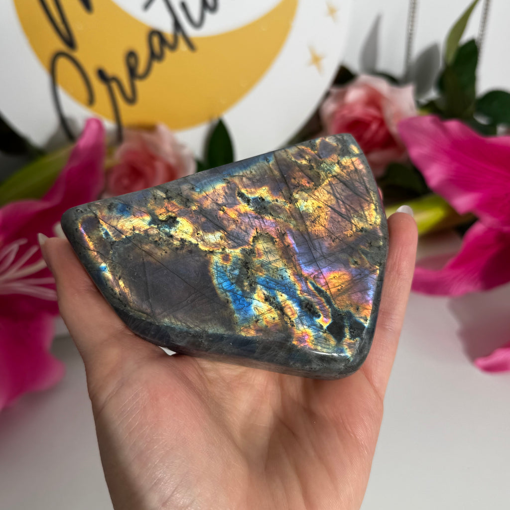 Labradorit steht für Schutz, Intuition und seelische Transformation. Er ist ein Stein für tiefe Prozesse – für Momente, in denen du dich selbst neu entdeckst, Altes loslässt oder innerlich wächst. Seine schillernde Oberfläche erinnert daran: Dein Licht zeigt sich oft erst, wenn du dich drehst und das Leben aus neuen Blickwinkeln betrachtest.